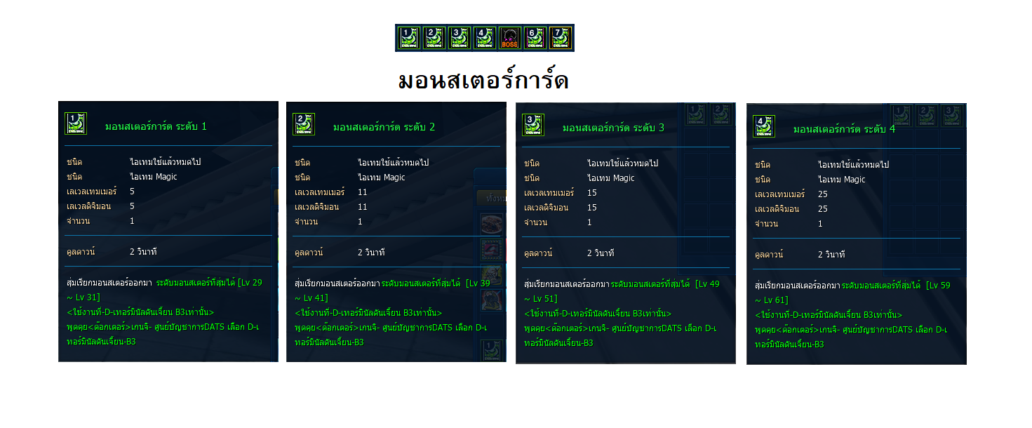 หาได้จาก มอนสเตอร์การ์ดระดับ 5 ถึง มอนสเตอร์การ์ดระดับสูง lv.2 โดยกำจัดดิจิมอนจาก มอนสเตอร์การ์ดประมาณ 3000 ตัว